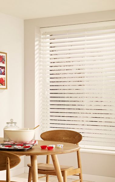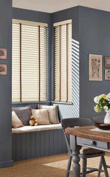 Yes, we offer bamboo, solid wood blinds and faux wood options, each available in a variety of finishes and slat widths. Faux wood is moisture-resistant, making it ideal for kitchens and bathrooms. Solid wood brings a warm, natural feel to living areas and bedrooms. Our Bamboo Blinds are FSC accredited as they are a sustainable product.