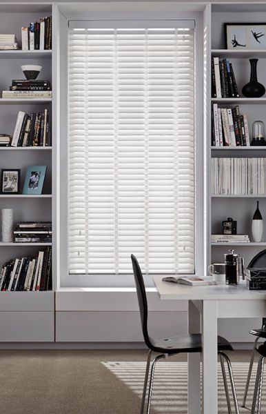 Available in 35mm and 50mm slats, this premium range offers a choice of natural wood tones and elegant painted finishes. Add your own finishing touches with matching or contrasting tapes and optional metal pulls.